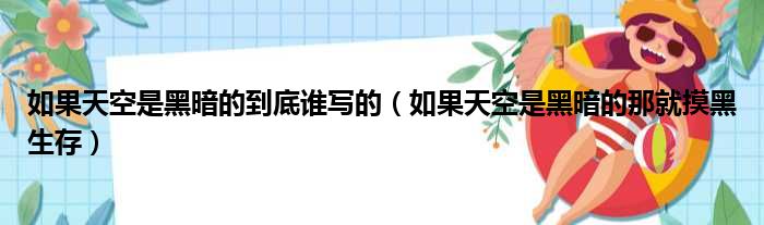 如果天空是黑暗的到底谁写的(如果天空是黑暗的那就摸黑生存),有没有人理理我呀?急死啦!