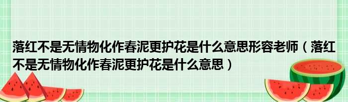 大家好,小活来为大家解答以上的问题。落红不是无情物化作春泥更护花是什么意思形容老师,落红不是无情物化作春泥更护花是什么意思这个很多人还不知道,现在让我们一起来看看吧!