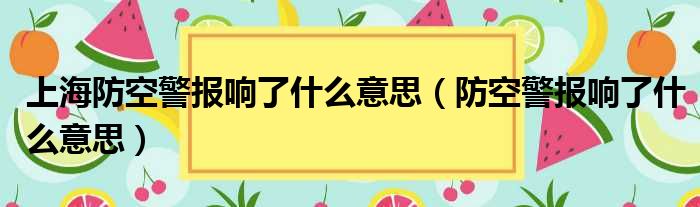 大家好,小活来为大家解答以上的问题。上海防空警报响了什么意思,防空警报响了什么意思这个很多人还不知道,现在让我们一起来看看吧!