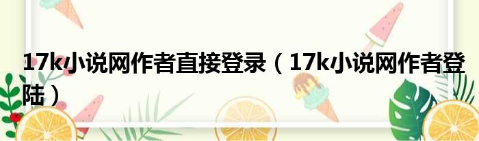 17k小说网作者直接登录(17k小说网作者登陆),时间来不及了,求直接说重点!