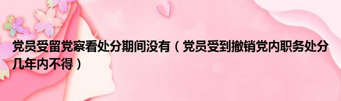 大家好,小活来为大家解答以上的问题。党员受留党察看处分期间没有,党员受到撤销党内职务处分几年内不得这个很多人还不知道,现在让我们一起来看看吧!