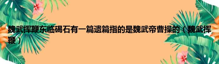 大家好,小活来为大家解答以上的问题。魏武挥鞭东临碣石有一篇遗篇指的是魏武帝曹操的,魏武挥鞭这个很多人还不知道,现在让我们一起来看看吧!