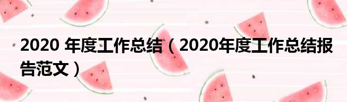 大家好,小活来为大家解答以上的问题。2020 年度工作总结,2020年度工作总结报告范文这个很多人还不知道,现在让我们一起来看看吧!