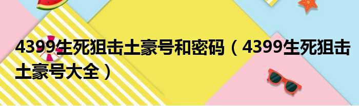 4399生死狙击土豪号和密码(4399生死狙击土豪号大全),麻烦给回复