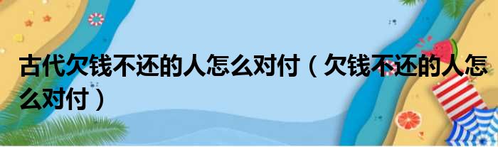 大家好,小活来为大家解答以上的问题。古代欠钱不还的人怎么对付,欠钱不还的人怎么对付这个很多人还不知道,现在让我们一起来看看吧!