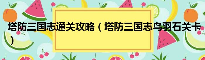 塔防三国志通关攻略(塔防三国志鸟羽石关卡),急!求解答,求不敷衍我!