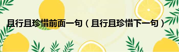 大家好,小活来为大家解答以上的问题。且行且珍惜前面一句,且行且珍惜下一句这个很多人还不知道,现在让我们一起来看看吧!