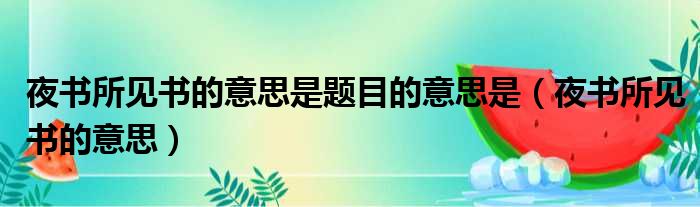 大家好,小活来为大家解答以上的问题。夜书所见书的意思是题目的意思是,夜书所见书的意思这个很多人还不知道,现在让我们一起来看看吧!