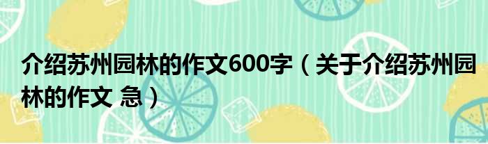 大家好,小活来为大家解答以上的问题。介绍苏州园林的作文600字,关于介绍苏州园林的作文 急这个很多人还不知道,现在让我们一起来看看吧!