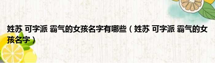大家好,小活来为大家解答以上的问题。姓苏 可字派 霸气的女孩名字有哪些,姓苏 可字派 霸气的女孩名字这个很多人还不知道,现在让我们一起来看看吧!
