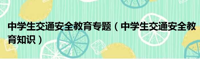 大家好,小活来为大家解答以上的问题。中学生交通安全教育专题,中学生交通安全教育知识这个很多人还不知道,现在让我们一起来看看吧!