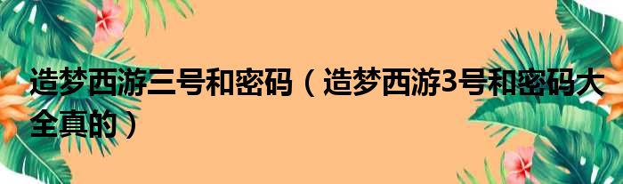 大家好,小活来为大家解答以上的问题。造梦西游三号和密码,造梦西游3号和密码大全真的这个很多人还不知道,现在让我们一起来看看吧!
