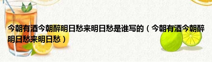 大家好,小活来为大家解答以上的问题。今朝有酒今朝醉明日愁来明日愁是谁写的,今朝有酒今朝醉明日愁来明日愁这个很多人还不知道,现在让我们一起来看看吧!