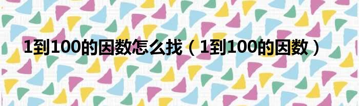 大家好,小活来为大家解答以上的问题。1到100的因数怎么找,1到100的因数这个很多人还不知道,现在让我们一起来看看吧!