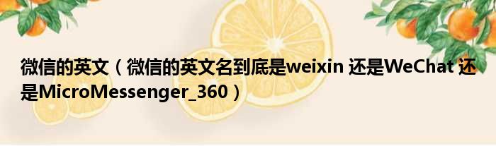 大家好,小活来为大家解答以上的问题。微信的英文,微信的英文名到底是weixin 还是WeChat 还是MicroMessenger_360这个很多人还不知道,现在让我们一起来看看吧!