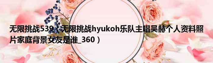 大家好,小活来为大家解答以上的问题。无限挑战539,无限挑战hyukoh乐队主唱吴赫个人资料照片家庭背景女友是谁_360这个很多人还不知道,现在让我们一起来看看吧!