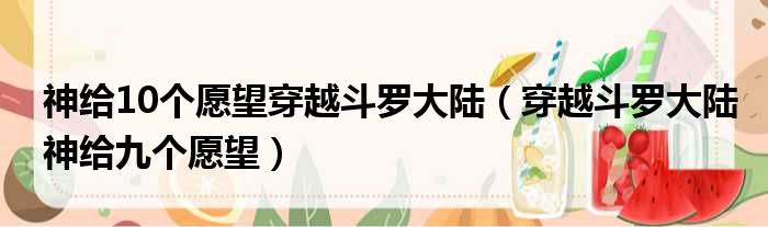 大家好,小活来为大家解答以上的问题。神给10个愿望穿越斗罗大陆,穿越斗罗大陆神给九个愿望这个很多人还不知道,现在让我们一起来看看吧!