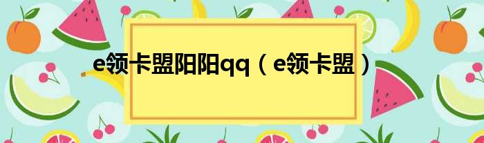 大家好,小活来为大家解答以上的问题。e领卡盟阳阳qq,e领卡盟这个很多人还不知道,现在让我们一起来看看吧!