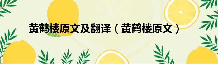 大家好,小活来为大家解答以上的问题。黄鹤楼原文及翻译,黄鹤楼原文这个很多人还不知道,现在让我们一起来看看吧!