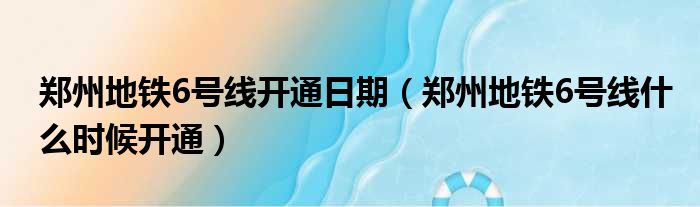 大家好,小活来为大家解答以上的问题。郑州地铁6号线开通日期,郑州地铁6号线什么时候开通这个很多人还不知道,现在让我们一起来看看吧!