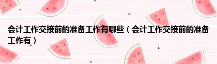 大家好,小活来为大家解答以上的问题。会计工作交接前的准备工作有哪些,会计工作交接前的准备工作有这个很多人还不知道,现在让我们一起来看看吧!