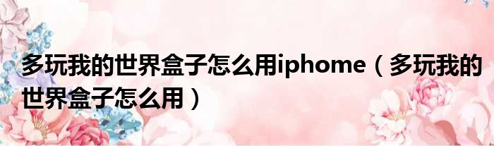 多玩我的世界盒子怎么用iphome(多玩我的世界盒子怎么用),有没有人理理小透明?急需求助!