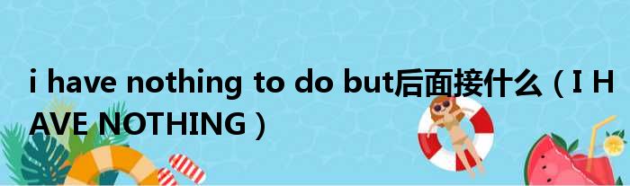 大家好,小活来为大家解答以上的问题。i have nothing to do but后面接什么,I HAVE NOTHING这个很多人还不知道,现在让我们一起来看看吧!