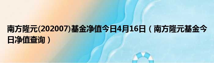大家好,小活来为大家解答以上的问题。南方隆元(202007)基金净值今日4月16日,南方隆元基金今日净值查询这个很多人还不知道,现在让我们一起来看看吧!