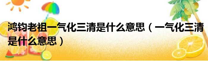 大家好,小活来为大家解答以上的问题。鸿钧老祖一气化三清是什么意思,一气化三清是什么意思这个很多人还不知道,现在让我们一起来看看吧!