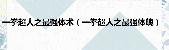大家好,小活来为大家解答以上的问题。一拳超人之最强体术,一拳超人之最强体魄这个很多人还不知道,现在让我们一起来看看吧!