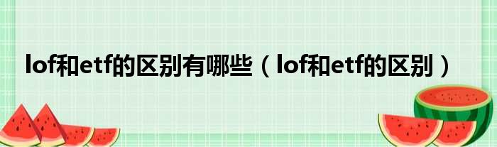 大家好,小活来为大家解答以上的问题。lof和etf的区别有哪些,lof和etf的区别这个很多人还不知道,现在让我们一起来看看吧!