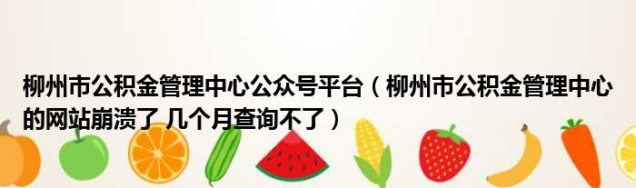 柳州市公积金管理中心公众号平台(柳州市公积金管理中心的网站崩溃了 几个月查询不了),在线等,求秒回,真的火烧眉毛!
