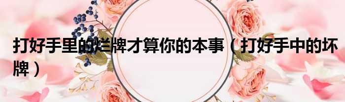 你们好,最近小活发现有诸多的小伙伴们对于打好手里的烂牌才算你的本事,打好手中的坏牌这个问题都颇为感兴趣的,今天小活为大家梳理了下,一起往下看看吧。