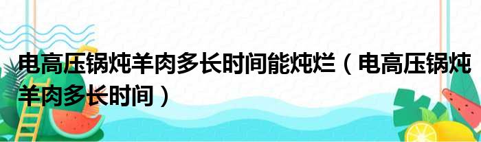 电高压锅炖羊肉多长时间能炖烂(电高压锅炖羊肉多长时间),这个坑怎么填啊?求大佬带带!