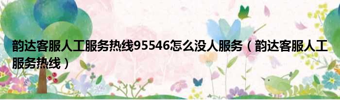 你们好,最近小活发现有诸多的小伙伴们对于韵达客服人工服务热线95546怎么没人服务,韵达客服人工服务热线这个问题都颇为感兴趣的,今天小活为大家梳理了下,一起往下看看吧。