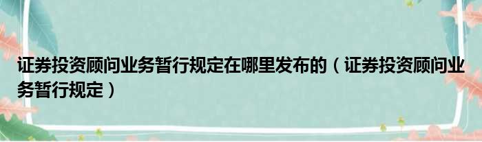 大家好,小活来为大家解答以上的问题。证券投资顾问业务暂行规定在哪里发布的,证券投资顾问业务暂行规定这个很多人还不知道,现在让我们一起来看看吧!