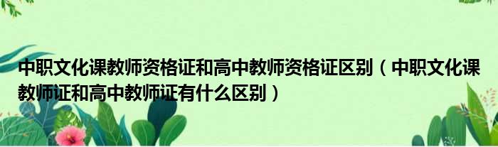 大家好,小活来为大家解答以上的问题。中职文化课教师资格证和高中教师资格证区别,中职文化课教师证和高中教师证有什么区别这个很多人还不知道,现在让我们一起来看看吧!