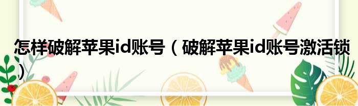 以上就是破解苹果id账号激活锁这篇文章的一些介绍,希望对大家有所帮助。