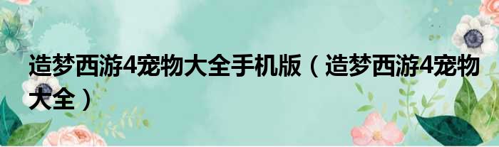 造梦西游4宠物大全手机版(造梦西游4宠物大全),这个怎么处理啊?求快回复!