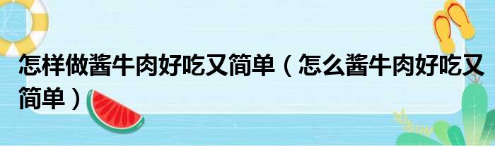 以上就是怎么酱牛肉好吃又简单这篇文章的一些介绍,希望对大家有所帮助。