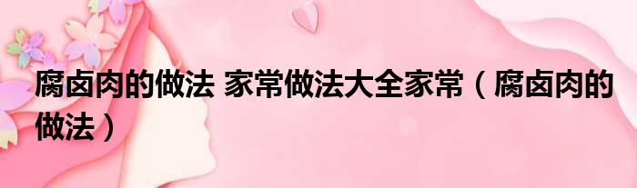 你们好,最近小活发现有诸多的小伙伴们对于腐卤肉的做法 家常做法大全家常,腐卤肉的做法这个问题都颇为感兴趣的,今天小活为大家梳理了下,一起往下看看吧。