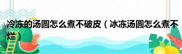 以上就是冰冻汤圆怎么煮不烂这篇文章的一些介绍,希望对大家有所帮助。