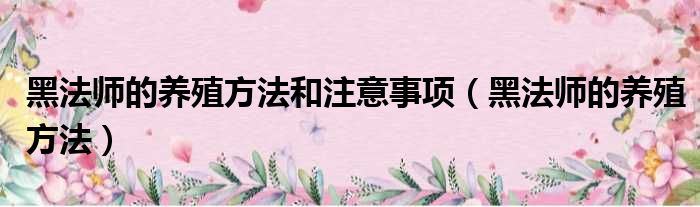 以上就是黑法师的养殖方法这篇文章的一些介绍,希望对大家有所帮助。