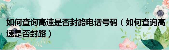 你们好,最近小活发现有诸多的小伙伴们对于如何查询高速是否封路电话号码,如何查询高速是否封路这个问题都颇为感兴趣的,今天小活为大家梳理了下,一起往下看看吧。