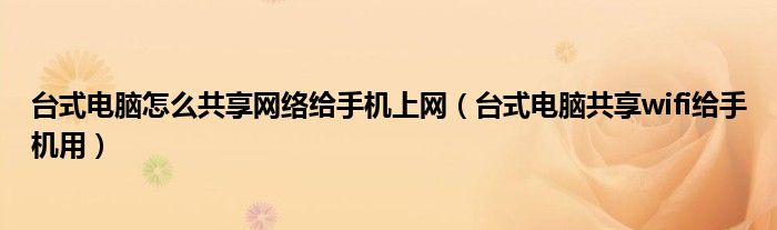 大家好,小活来为大家解答以上的问题。台式电脑怎么共享网络给手机上网,台式电脑共享wifi给手机用这个很多人还不知道,现在让我们一起来看看吧!