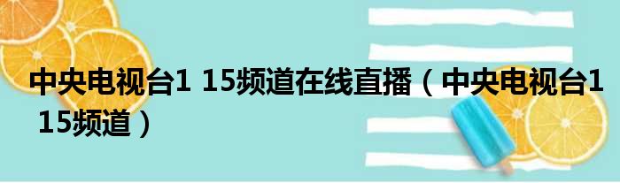 大家好,小活来为大家解答以上的问题。中央电视台1 15频道在线直播,中央电视台1 15频道这个很多人还不知道,现在让我们一起来看看吧!