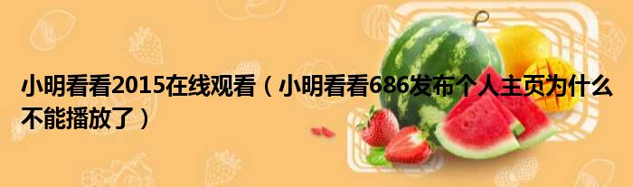 大家好,小活来为大家解答以上的问题。小明看看2015在线观看,小明看看686发布个人主页为什么不能播放了这个很多人还不知道,现在让我们一起来看看吧!