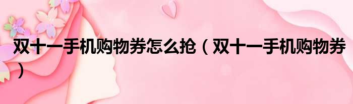 以上就是双十一手机购物券这篇文章的一些介绍,希望对大家有所帮助。