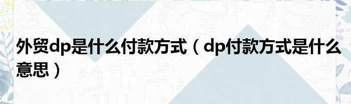 大家好,小活来为大家解答以上的问题。外贸dp是什么付款方式,dp付款方式是什么意思这个很多人还不知道,现在让我们一起来看看吧!