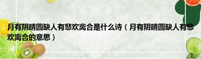 大家好,小活来为大家解答以上的问题。月有阴晴圆缺人有悲欢离合是什么诗,月有阴晴圆缺人有悲欢离合的意思这个很多人还不知道,现在让我们一起来看看吧!